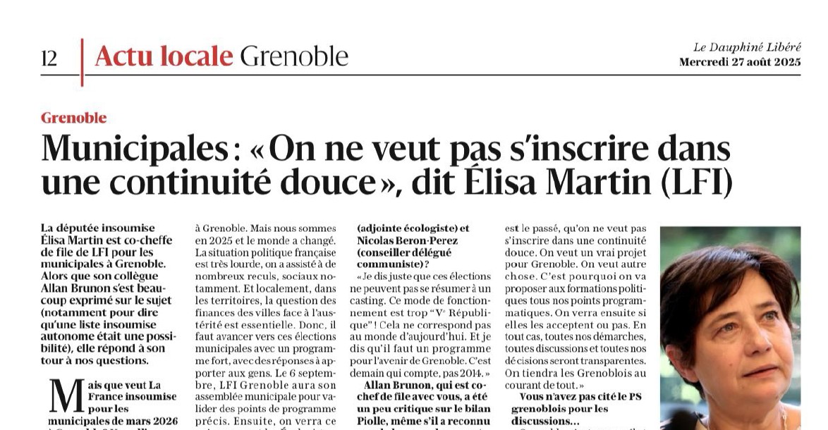 Read moreMunicipales 2026 : LFI veut tous les pouvoirs dans l'agglomération grenobloise