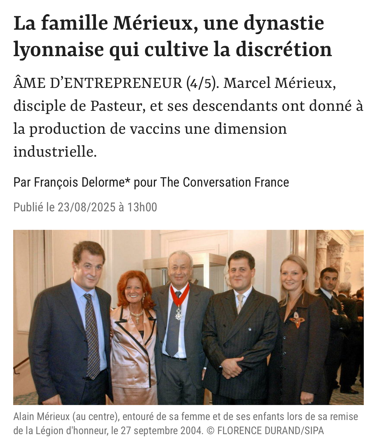L'hebdomadaire Le Point vient de consacrer sur sa version numérique un long reportage à Alain Mérieux. C'est un reportage particulièrement mérité à destination d'une famille qui incarne l'excellence mondiale dans le secteur de la santé.