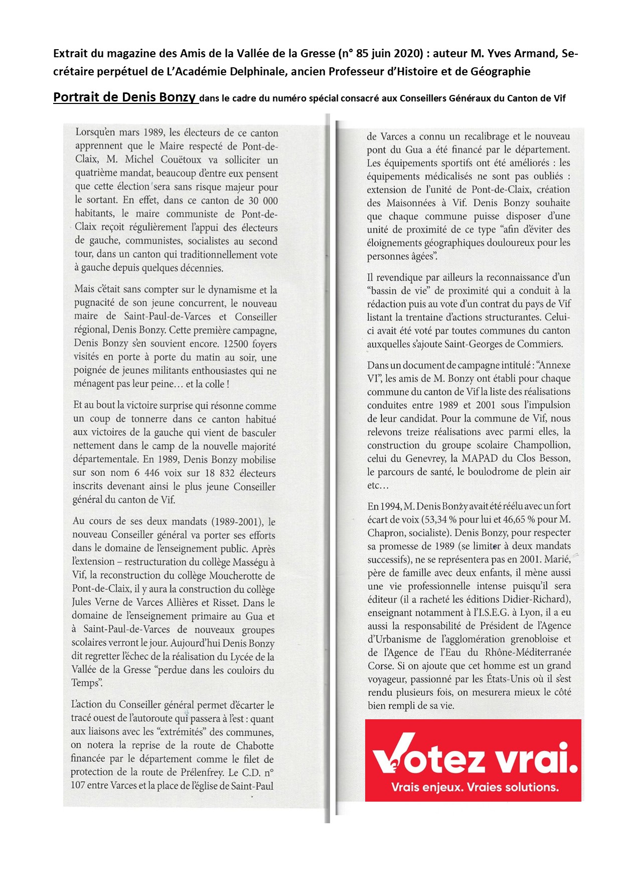Des expériences liées tantôt au suffrage universel (Conseiller Régional, Conseiller Général, Maire) que j'ai gagnées au prix de campagnes souvent très difficiles dans une géographie (Canton de Vif) alors historiquement sous influence du PCF avec son bastion Le Pont de Claix.